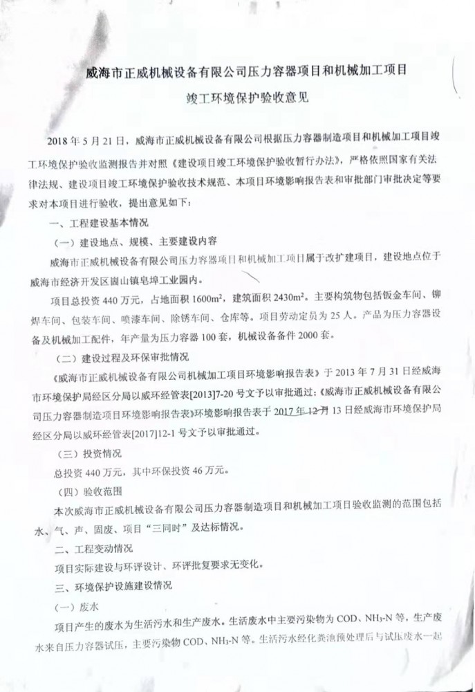 Public announcement of environmental protection acceptance opinions on the completion